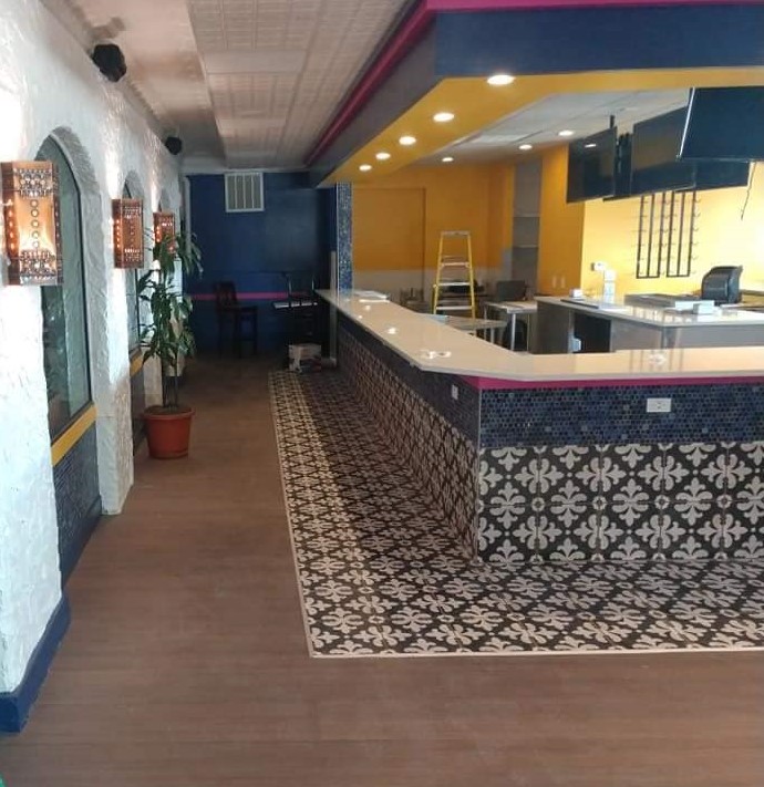 Walls and floors with pool deco and Mexican imported ceramic tile at a local Mexican Restaurant